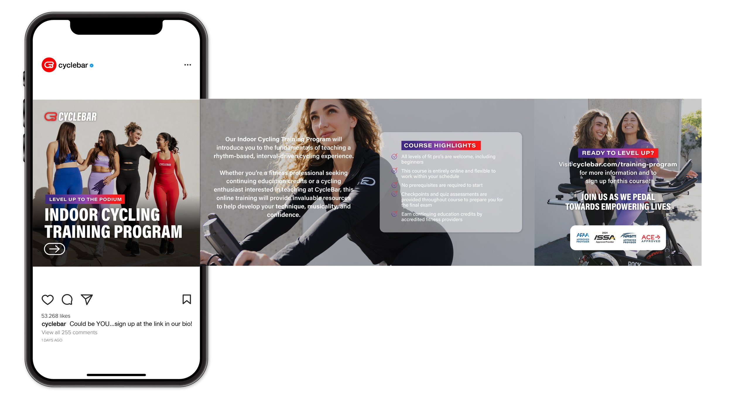 An example of a carousel post for the brand’s national Instagram account inviting riders to join the accredited indoor cycling training program.