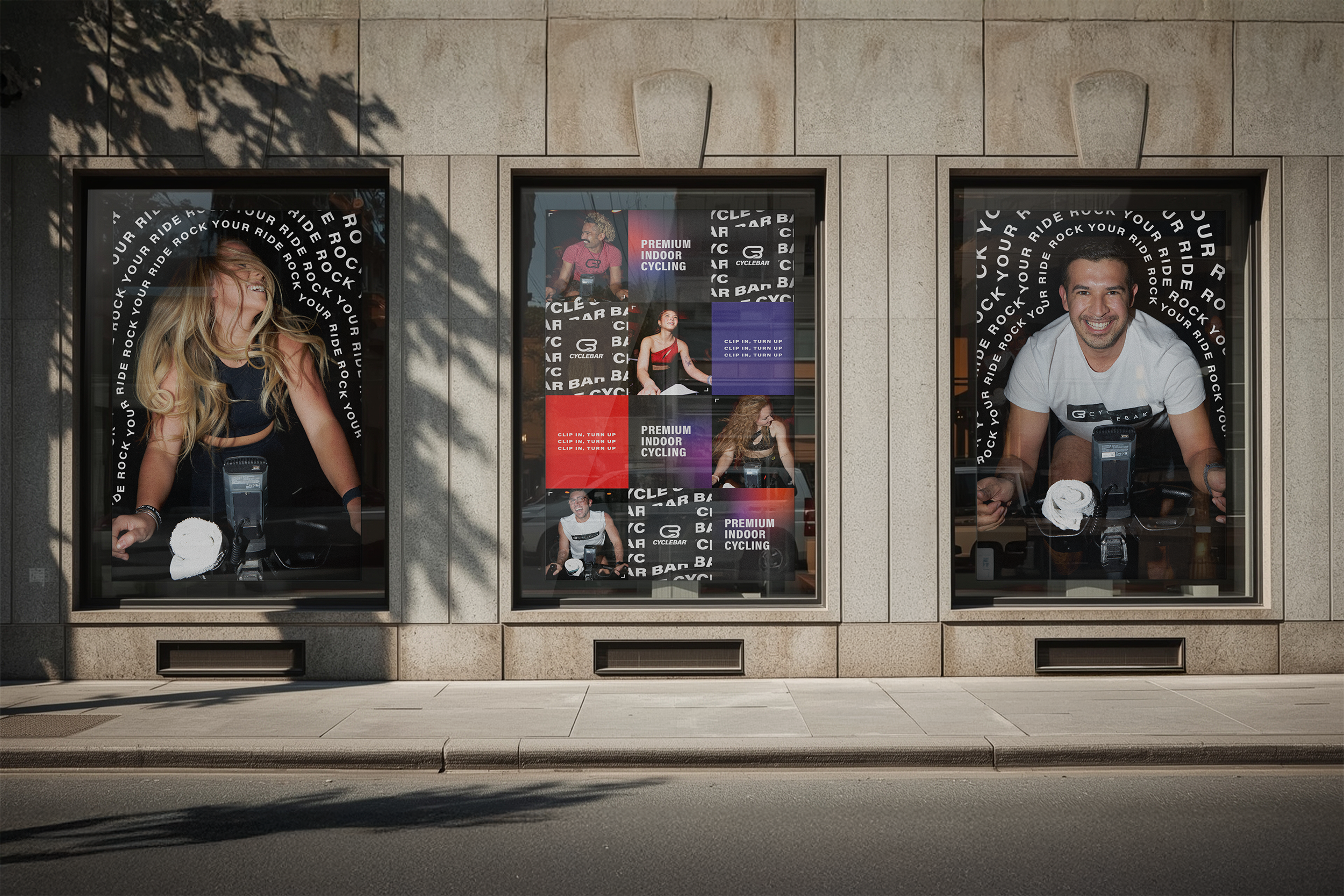 Storefront signage concept to greet members, attract new riders and show passerby what a CycleBar class is all about.