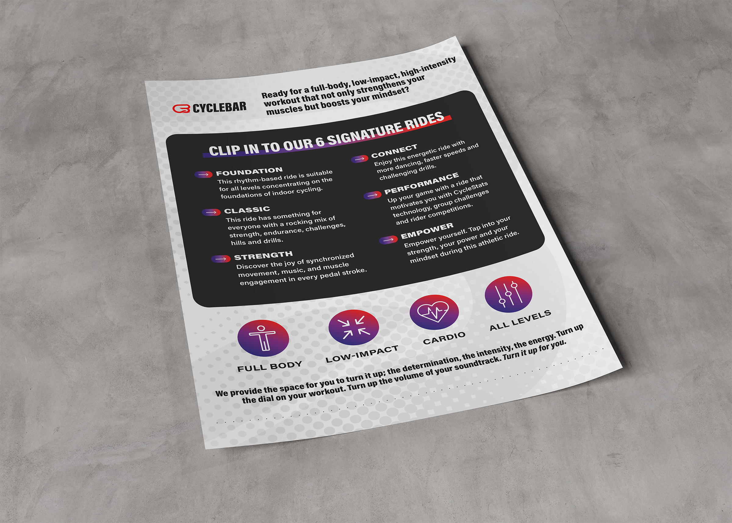 This vision came to life through social campaigns and email marketing, to in-studio screens, environmental signage, and franchise-ready templates. Every touchpoint was designed to feel dynamic to the franchisees and riders alike.